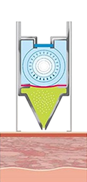 レーザーを圧力に変換し定量の薬剤を素早く、均一に真皮層に注入します。