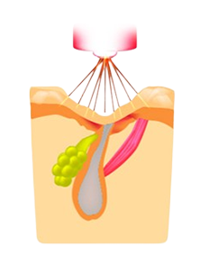 皮脂腺までレーザーを照射して