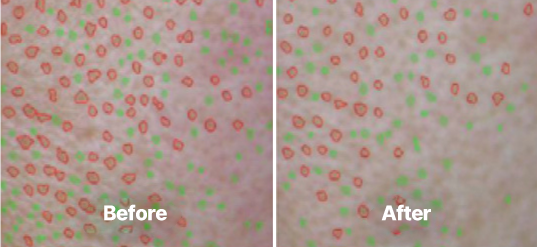 皮膚弾力経過、目元、顔全体小じわ改善、毛穴縮小及び角質改善期待