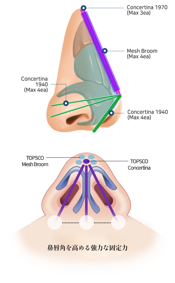 生分解性PCLスレッドを使用し、トップスコは洗練された鼻筋を作る非手術的な方法です。