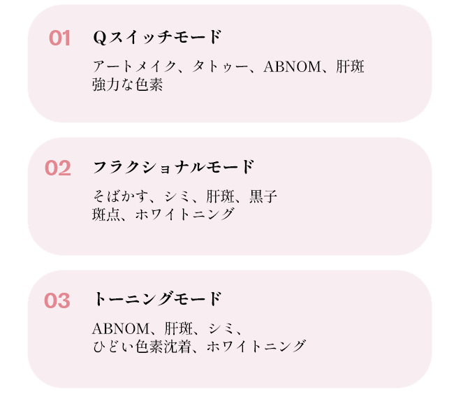 そばかす、シミ、タトゥー、肝斑をキレイに治療します。